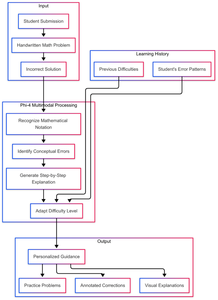 Interactive tutors that reason across diagrams, equations, and natural language text can use Phi-4 Multimodal to deliver multimodal learning experiences. The model can analyze visual educational content, explain concepts, and even generate explanatory visuals based on textual descriptions.
