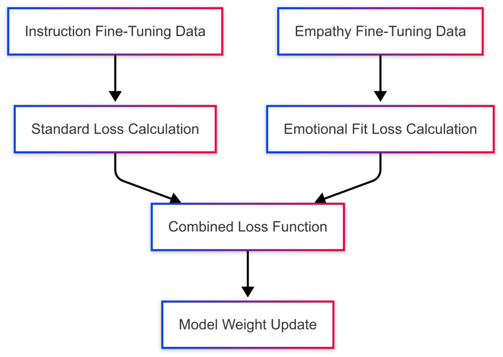 Caption: Traditional instruction fine-tuning merges with empathy fine-tuning to embed human-centered sensitivity.